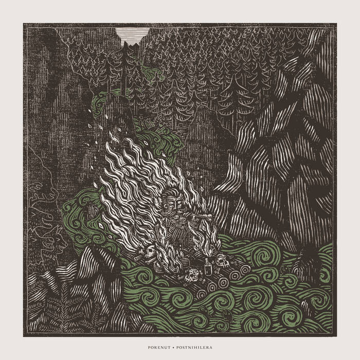 ‘Postnihilera’ – the latest LP from the free-spirited Slovakian black metal outfit known as Porenut – is an interesting mix of humour, misdirection, traditional black metal, and jaunty folk music. The end result however, is not nearly as clusterfucky as that description implies. The main body of this work is energetic and traditional black metal driven more by riffs than overwhelming atmospheres, something along the lines of Ungod amongst others. The production is raw but crisp, like stepping out into a cold frosty morning. This relatively straightforward approach is elevated by Porenut’s imaginative approach to melody; even the more generic black metal tracks find themselves progressing toward a goal of sorts, with some unexpected finale or progression, usually defined by what can only be described as ‘whimsical riffing’.