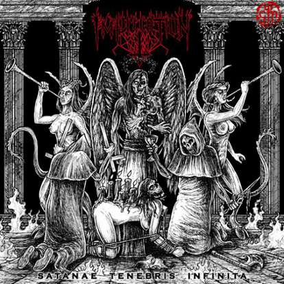 The album proceeds by taking a similar approach to ‘Realm of Chaos’. Simple themes are strung together with determination despite being constantly interrupted by moments of utter, blasting chaos. The riffs themselves are relatively simple, but they communicate the idea that any forward progression is always at the mercy of the random destructiveness of the universe. These slower passages that hint at a tonal centre are far more developed than the Bolt Thrower classic, and are even underpinned by some keyboards in places. This subtle inflection of timbre – along with an earthy guitar tone that lends itself to doom – as well as providing additional depth to the mix hints at Imprecation’s overall intentions behind their craft. This is a beast of conflict and resolution. But the onward march of progress represented by these purposeful mid-paced riffs, atop which melodies, soaring leads, and deep keyboards can all build upon is the overriding backbone of ‘Satanae Tenebris Infinita’. Drums, although fairly low in the mix, loyally follow the path of the rhythm guitars. Providing a rock solid rhythmic core to anchor the dichotomies of staccato and ringing chords as they play off each other.