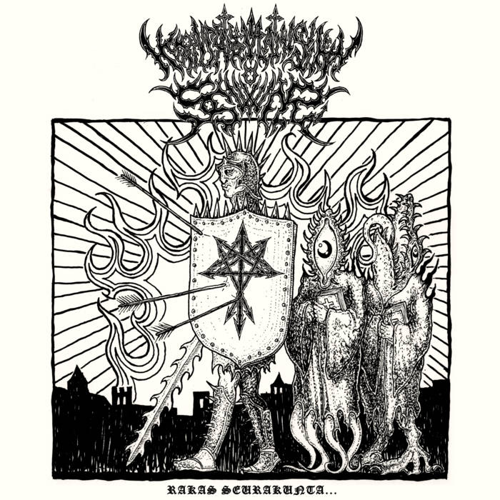 A primal, absurdist piece of black metal in the most visceral tradition of the form, ‘Rakas seurakunta’ is the debut demo from this Finnish outfit, which is the side project of one Kalle Kostivirta, mastermind behind death metal avant-gardist Oksennus. Here we find raw black metal as described, ripped straight from the playbook of Profanatica and VON. Although for all the manic energy of these forebears, there was still a degree of premeditation and restraint behind thier work. Not so with Kristillis-Kansallis-Konservatiivinen-Suur-Suomi, who furnish their us with only the most cursory nod to structure and pacing.